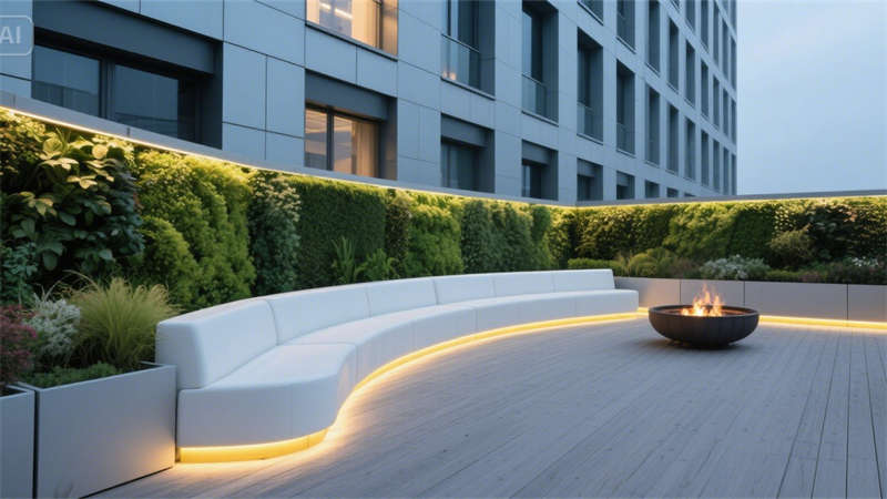 遠(yuǎn)程會(huì)議室的環(huán)形攝像頭與聲學(xué)軟包、空中花園的模塊化花箱與夜景地?zé)簟⑵髽I(yè)文化展廳的懸浮展柜與互動(dòng)投影,在細(xì)節(jié)中植入智能科技與人文關(guān)懷。綠植隔斷、木紋材質(zhì)、企業(yè)色邊框等元素重復(fù)出現(xiàn),強(qiáng)化空間歸屬感。