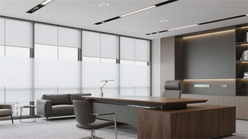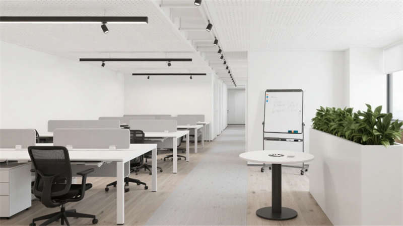 室內(nèi)空間延續(xù)外立面設(shè)計(jì)語言,企業(yè)大堂通過技術(shù)創(chuàng)新實(shí)現(xiàn)淺白大理石與木紋墻面的無縫拼接,懸浮式線性燈光系統(tǒng)可隨自然光線智能調(diào)節(jié)色溫。開放式辦公區(qū)配置智慧化模塊組合,可升降桌體與軌道射燈靈活適配多元場景,協(xié)作島集成無線充電與環(huán)境感知功能。高管辦公室采用智能霧化玻璃隔斷,實(shí)現(xiàn)隱私與通透的自由切換。科技會(huì)議室搭載高清透明顯示系統(tǒng)與多聲道聲學(xué)設(shè)備,電動(dòng)百葉簾與補(bǔ)光系統(tǒng)聯(lián)動(dòng)打造智能會(huì)議環(huán)境。