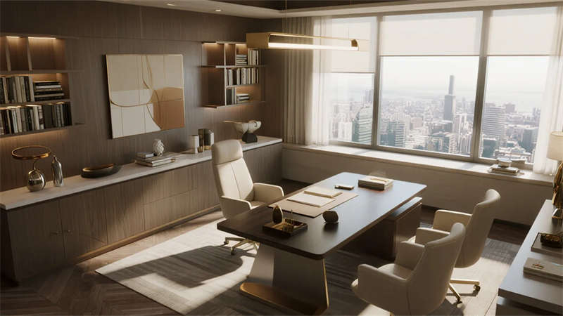 本設計以輕奢風格為核心,打造一個優雅而舒適的辦公環境。外觀采用現代建筑語言,玻璃幕墻與金屬細節相結合,彰顯高端氣質。內部空間注重細節與品質,接待區以大理石前臺和金屬裝飾營造歡迎氛圍,開放式辦公區布局靈活,配備簡約家具和自然光元素,提升工作效率。會議室設計專業且智能,私人辦公室融合落地窗和 luxury 裝飾,提供靜謐工作空間。員工休息區與咖啡角注重舒適性,軟裝家具和溫馨 lighting 促進放松與交流。走廊區域通過藝術墻面和 lighting 效果增強空間感,整體設計融合材質對比與柔和色調,營造出精致而人性化的辦公體驗,強調美學與功能的平衡。