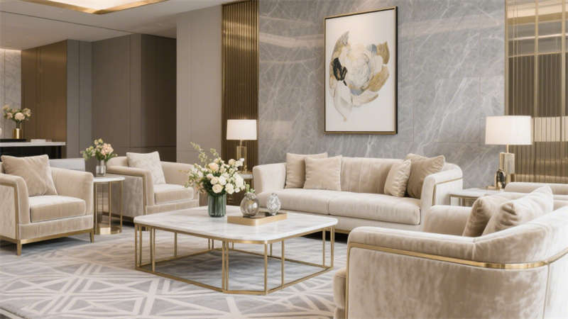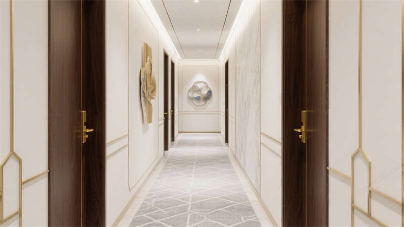 本設(shè)計(jì)以輕奢風(fēng)格為核心,通過(guò)柔和的基底色調(diào)與精致的細(xì)節(jié)搭配,構(gòu)建出兼具質(zhì)感與舒適度的酒店環(huán)境。空間以米白色與淺灰色為基礎(chǔ),巧妙融入金色金屬線條作為點(diǎn)綴,既避免了過(guò)度奢華的厚重感,又增添了空間的精致度。墻面與地面選用細(xì)膩的大理石紋理材質(zhì),在光線映襯下呈現(xiàn)出自然的光澤,提升整體空間的高級(jí)感。家具選型注重線條的簡(jiǎn)約流暢,搭配柔軟的布藝軟裝,營(yíng)造出溫馨舒適的居住氛圍。各個(gè)區(qū)域在設(shè)計(jì)上保持風(fēng)格統(tǒng)一,從公共空間到客房區(qū)域,都延續(xù)了輕奢的設(shè)計(jì)語(yǔ)言,讓整體空間既富有格調(diào),又能給人帶來(lái)放松愜意的居住體驗(yàn)。