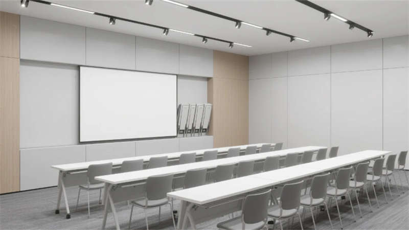 高管辦公空間彰顯差異化設計:經理辦公室以木格柵墻面與模塊沙發(fā)營造親和力,總裁辦公室則通過深胡桃木隱形門、弧形沙發(fā)與城市景觀落地窗凸顯沉穩(wěn)氣度。多功能廳采用可伸縮隔斷與嵌入式LED屏,適應培訓、會議等多場景需求;茶水間以中島吧臺與幾何層板打造輕松社交空間,筒燈聚焦的綠植墻增添生機。