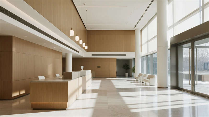 本辦公樓設計以現(xiàn)代簡約美學為基調(diào),營造出寧靜而高效的商務環(huán)境。建筑外觀采用純凈的玻璃幕墻與利落線條,在光影交錯中呈現(xiàn)輕盈通透的視覺體驗;步入大廳,淺色石材與溫潤木質(zhì)元素相融,挑高空間與落地窗引入豐沛自然光,傳遞開放包容的氛圍。內(nèi)部功能區(qū)布局注重人性化:開放式辦公區(qū)以靈活隔斷促進協(xié)作,綠植點綴為空間注入生機;簡約會議室配備智能設施,滿足高效溝通需求。員工休憩區(qū)與樓頂花園成為亮點——前者以暖色調(diào)家具打造社交角落,后者則用木質(zhì)平臺、綠籬與城市天際線共構(gòu)都市綠洲,讓工作者在忙碌之余俯瞰風景、釋放壓力。電梯廳與衛(wèi)浴空間延續(xù)統(tǒng)一設計語言,細節(jié)處體現(xiàn)精致工藝。整體設計將自然、光感與簡約哲學交織,創(chuàng)造一處兼具理性效率與人文溫度的辦公場所。