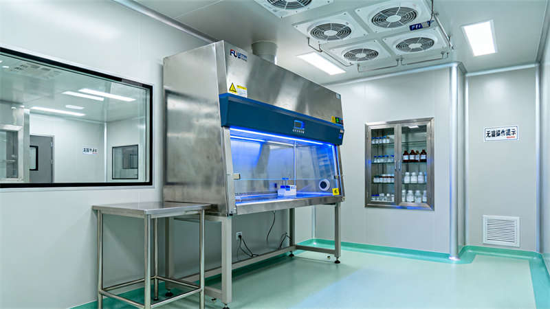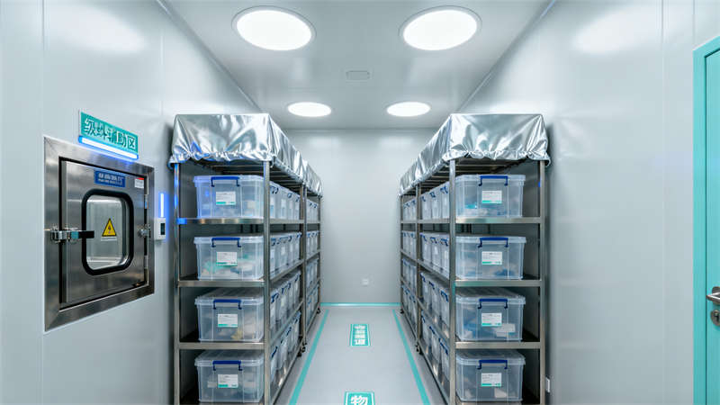 室內(nèi)空間劃分清晰,入口風(fēng)淋室作為潔凈第一道防線,搭配專屬衣柜區(qū),助力人員規(guī)范進入;核心生產(chǎn)區(qū)以通透玻璃隔斷劃分,搭配高效過濾設(shè)備,營造潔凈通透的操作環(huán)境,操作人員身著專業(yè)潔凈服,盡顯規(guī)范作業(yè)氛圍。輔助區(qū)域同樣注重細節(jié),物料暫存間采用防塵物料架與傳遞窗設(shè)計,確保物料潔凈存儲與轉(zhuǎn)運;無菌實驗室配置專業(yè)安全柜與試劑柜,滿足高潔凈等級操作需求;潔凈走廊通過清晰標(biāo)識引導(dǎo)動線,連接各功能區(qū)域,提升空間流轉(zhuǎn)效率;空調(diào)機房作為動力核心,設(shè)備布局規(guī)整,保障整體潔凈系統(tǒng)穩(wěn)定運行。?
