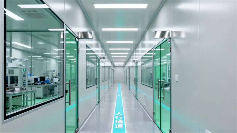整體設(shè)計從材質(zhì)選擇到光影運用均圍繞“潔凈”展開,墻面、地面、頂面的銜接細節(jié)處理到位,既符合無塵環(huán)境的專業(yè)要求,又為后續(xù)使用提供便捷與安全保障。