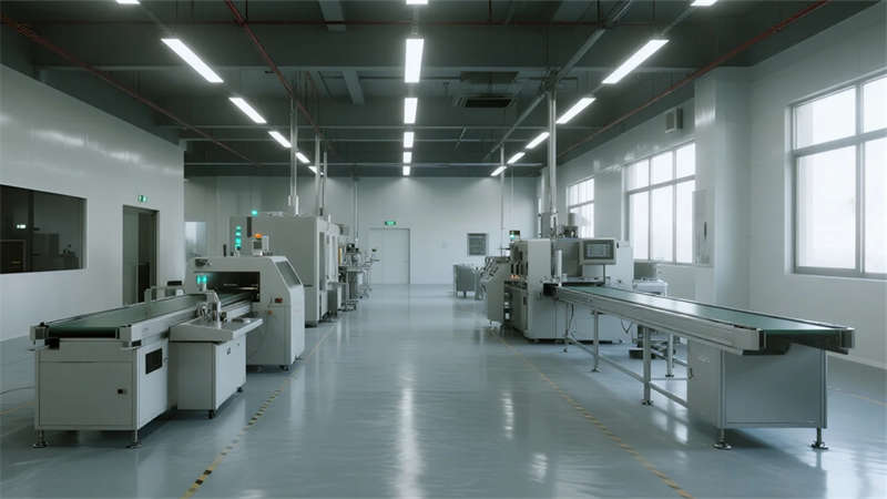 空間內(nèi)核強(qiáng)調(diào)人性化體驗(yàn):挑高中庭以懸浮樓梯創(chuàng)造輕盈動(dòng)線,屋頂花園成為員工觸摸自然的窗口;無柱車間與智能實(shí)驗(yàn)室展現(xiàn)工業(yè)精密感,而木格柵連廊與綠植墻則注入人文溫度。夜幕降臨時(shí),建筑化為光影容器,冷白光帶勾勒結(jié)構(gòu)輪廓,暖黃窗格透出工作場(chǎng)景的活力。