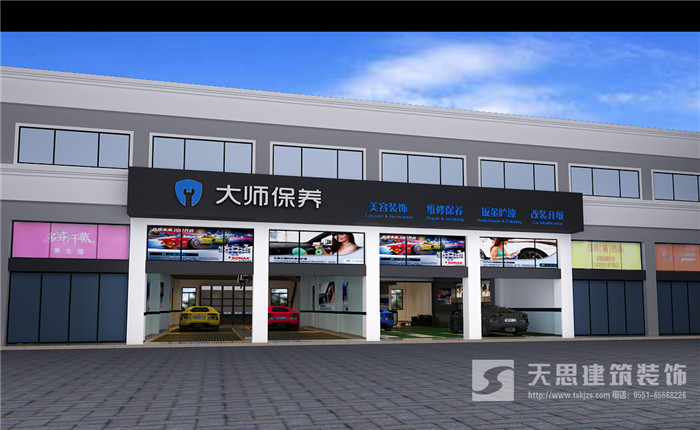 設計公司:安徽天思建筑裝飾 設計項目:919汽服汽車美容保養店設計 設計師:梅工 設計面積:460平方 項目地址:肥東 頂面環形效果 外立面效果 維修車間效果 無塵車間效果 洗車間效果