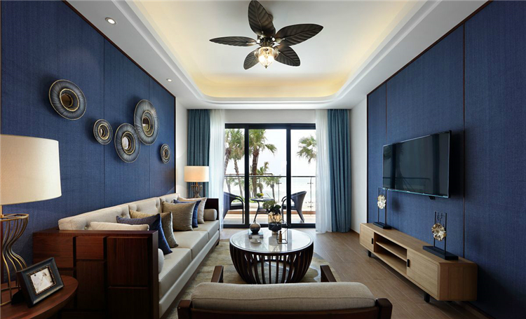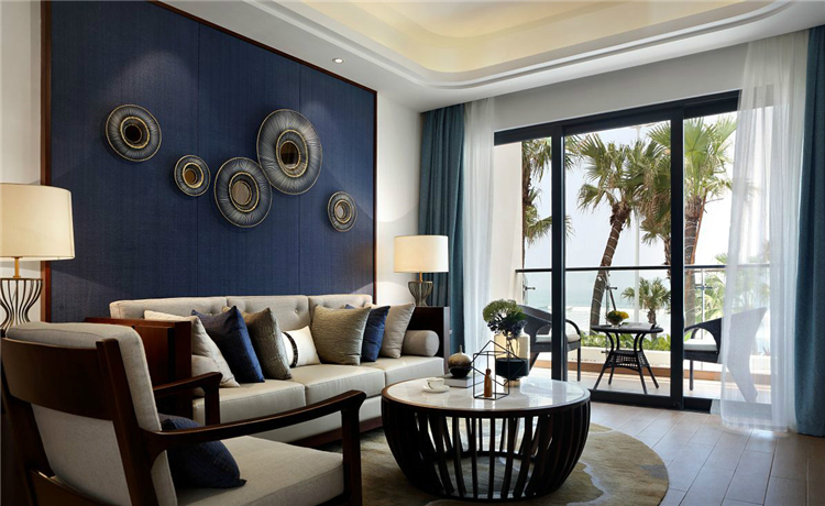 對于海邊的酒店套房,最好選與大海相關的裝修這套房間裝修改用藍色元素落地窗外就是大海,迎著海風瞭望海邊,整體裝修帶有地方特色,軟裝擺設則偏簡潔大方,從視覺上給人一種舒服的感受。