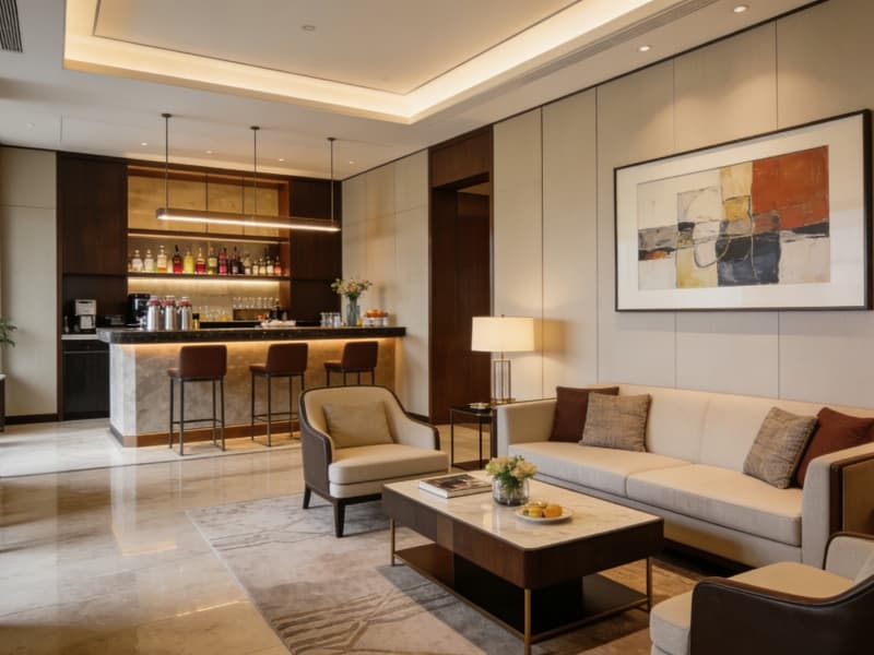 五層為特色配套層,設(shè)有行政酒廊、健身房與SPA區(qū)。行政酒廊提供專屬服務(wù),健身房配備先進(jìn)器材,SPA區(qū)以自然色調(diào)為主,搭配舒緩音樂,讓客人放松身心。