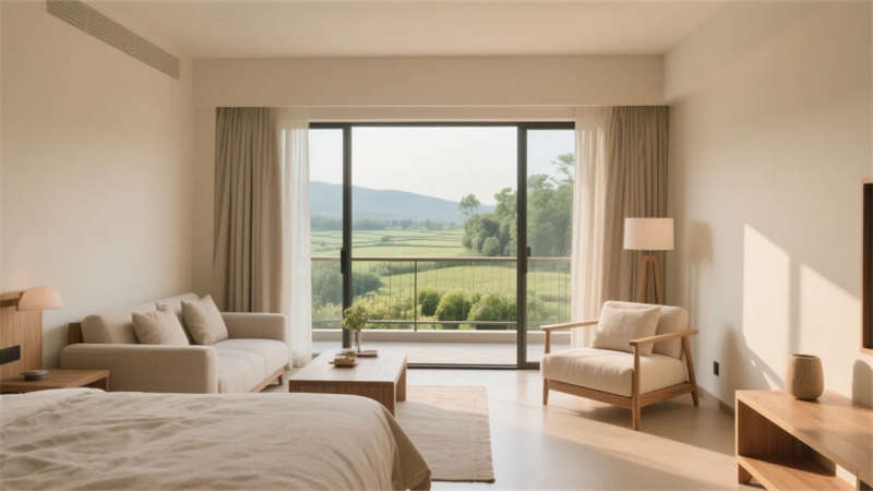 公共區(qū)域如大堂和餐廳,采用挑高與開放布局,光線成為空間的主角。客房設(shè)計去繁就簡,注重舒適性與視野,每間房都能感受到不同的自然片段。屋頂露臺是項目的亮點,成為客人放空或社交的絕佳場所。整體設(shè)計不刻意追求裝飾,而是通過材質(zhì)、光影與自然對話,為都市人提供一處回歸寧靜的棲息地。