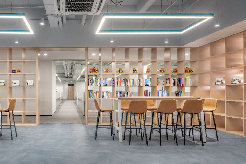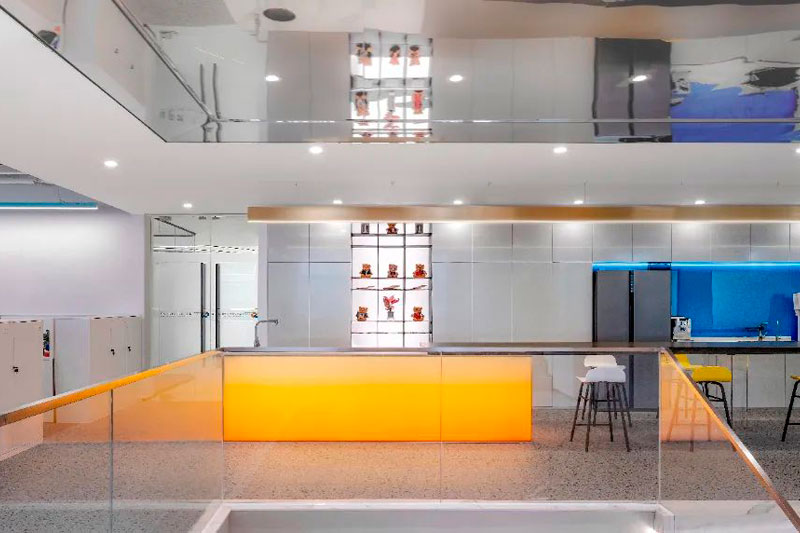 沉浸式體驗(yàn)人與空間交互,茶水區(qū)通過鏡面天花反射,光影在立體空間中流動(dòng),超動(dòng)感空間氛圍就此而生,板塊的不斷更新為它帶來(lái)永不停歇的活力,這里是“巨人”的世界。