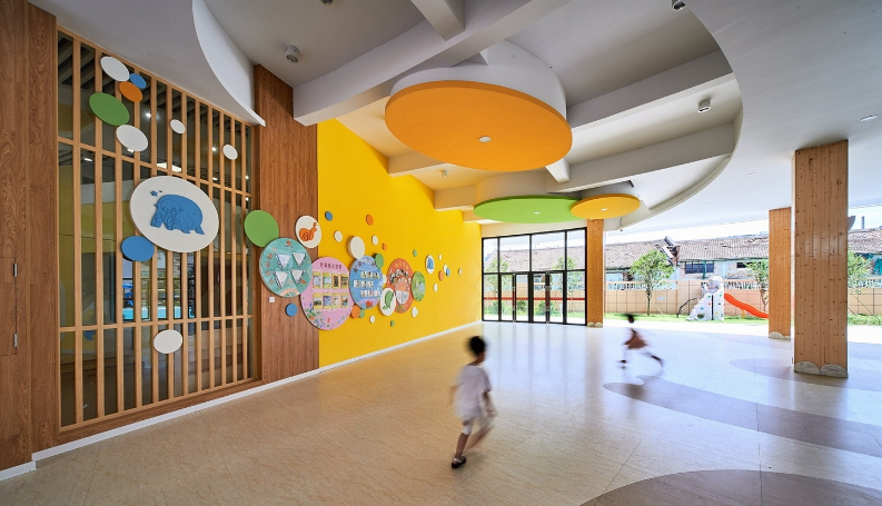 這是一所回歸自然社會、充滿趣味和學習元素的幼兒園環境,設計師將教育內涵融入空間,讓幼兒玩中學、學中玩,以空間促發展,體現設計的價值.