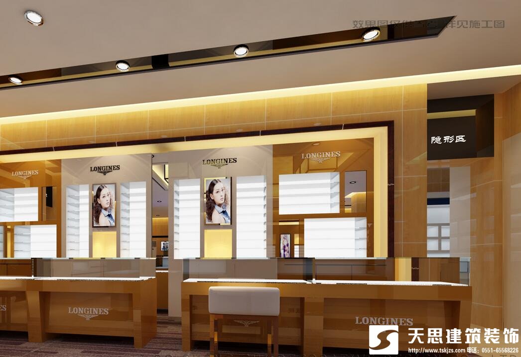 大廳是展現(xiàn)給客人最基本最實(shí)在的部分,各種眼鏡樣品都在這里展示給顧客,因此此處的精品裝修非常重要,也是提升一個眼鏡店身價(jià)的保障。大廳對于照明、色彩、鏡子的運(yùn)用顯得相當(dāng)重要,一般眼鏡店都使用白光照明,以透出眼鏡的質(zhì)感,光亮的感覺也能體現(xiàn)出一種更舒適的購物氣氛。但也不宜太亮,同時在店頭、天花板、柜臺都應(yīng)該考慮安裝滿足各自要求的照明器具。在色彩的搭配上,淺色眼鏡用深藍(lán)色襯托、深色眼鏡用白底來表現(xiàn),都更符合文化消費(fèi)的情調(diào)也能感受眼鏡的色彩和材質(zhì)帶來的另類感。同時,鏡子的運(yùn)用也很重要,能給人店面寬敞的錯覺,起到亮堂、開闊視野的作用。