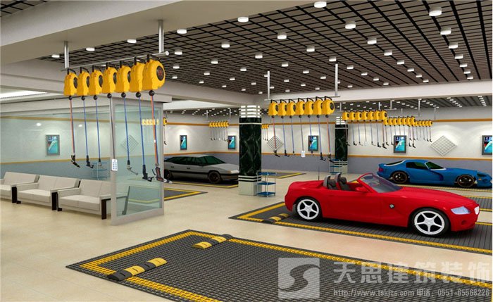汽車美容工位是汽車美容店的客戶車輛進(jìn)行施工的場所,因此在這里裝修要盡量考慮水電氣股的吊放,可以兩個車位公用一個水電氣股,節(jié)省成本。