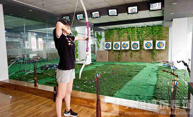 射擊場設備專業裝修大氣又精細,可以滿足人們多種多樣的需求。在射擊場中間安裝著綠色的軟皮材料,柔軟而清新,白色的線條和綠色搭配和諧又美觀。各個射擊展位中間分隔著鐵藝的圍欄,可以保持各個射手之間的安全距離。在射擊場的盡頭擺放著大小一致的靶子,天花板上則安裝著一些藍色和黃色相間的小旗。