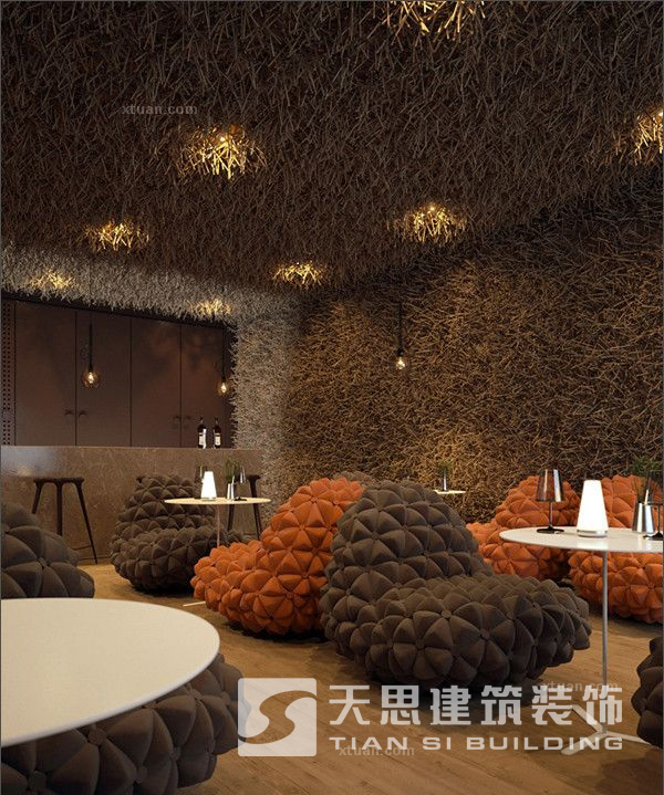 這款主題餐廳真的是很夠創意的哦,很令人感嘆的是這個餐椅是怎么做成的呢?我們坐在上面的時候會不會不舒服呢?其實大家不用擔心,這款主題餐廳的特色就在于他的餐椅上,這個餐椅是用軟布做成的,我們坐在上面會感覺到很舒服甚至可以起到按摩的作用。是不是很實用呢。