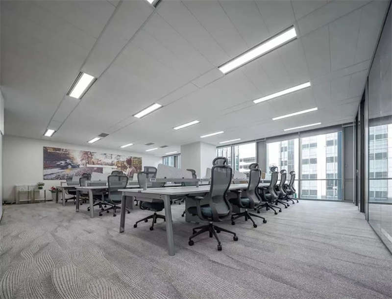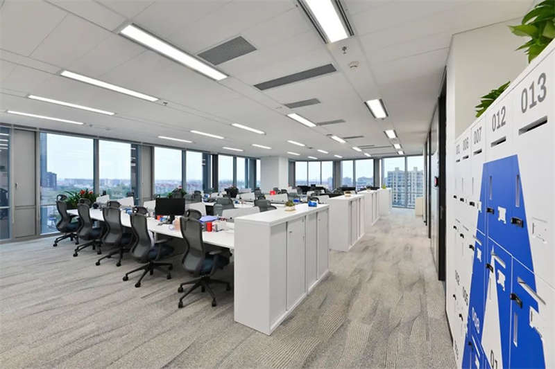 員工區(qū)部份選用了電動可調(diào)的升降辦公桌,以滿足員工個性化的需求,白灰色的家具搭配,混搭淺木色的休閑洽談區(qū)域,地面選用流線款長版的無膠水鋪裝的地毯相呼應(yīng)。提升了空間品質(zhì)和美感。