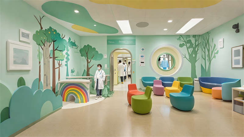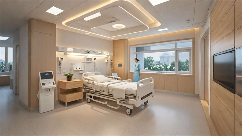 本8000㎡現(xiàn)代醫(yī)院設(shè)計(jì)以 ' 療愈型智能醫(yī)療 ' 為核心理念,采用模塊化空間布局。門(mén)診區(qū)運(yùn)用淺藍(lán)灰主調(diào)配木紋元素,通過(guò)色彩心理學(xué)緩解患者焦慮;醫(yī)技區(qū)采用高反射率材料增強(qiáng)空間通透感。創(chuàng)新性整合智能導(dǎo)診、空氣質(zhì)量管理及醫(yī)療物流系統(tǒng),病房單元設(shè)置多模式照明系統(tǒng),兼顧醫(yī)療操作與患者休憩需求。環(huán)保抗菌材料全覆蓋,關(guān)鍵區(qū)域配置跌倒預(yù)警地膠系統(tǒng)。屋頂療愈花園突破傳統(tǒng)醫(yī)療空間限制,形成立體綠化體系。整體設(shè)計(jì)實(shí)現(xiàn)醫(yī)療功能、人文關(guān)懷與智能科技的有機(jī)融合,打造新一代智慧醫(yī)院樣板。