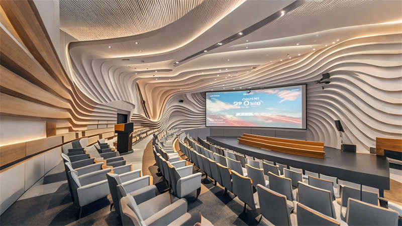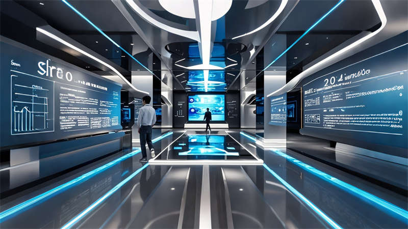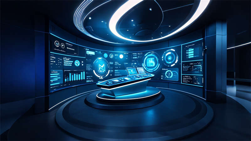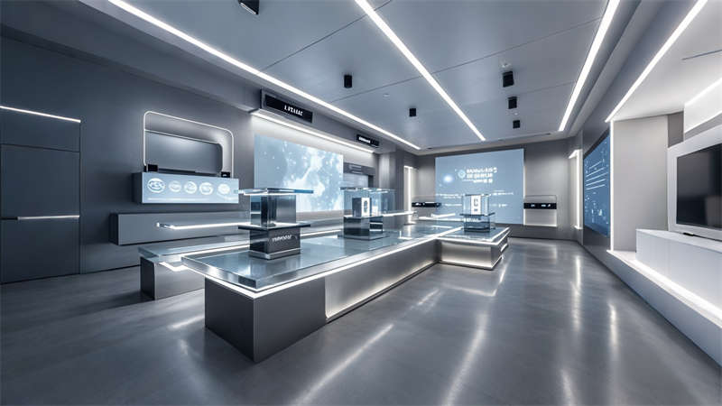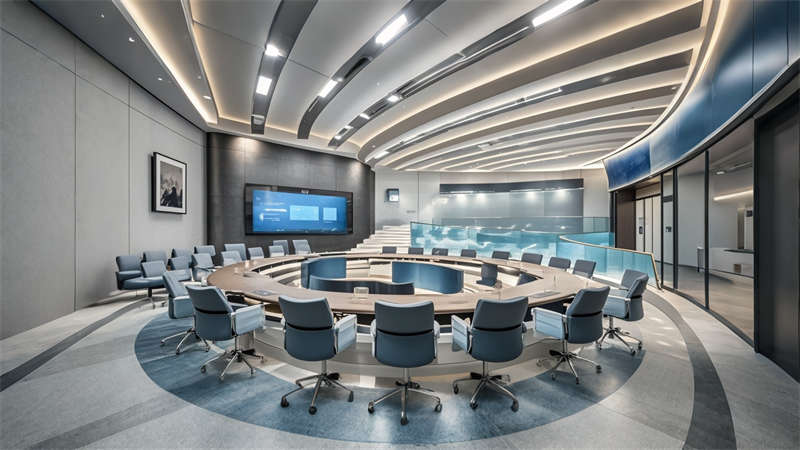 本 3000㎡辦公樓展廳采用 ' 科技人文 ' 設計理念,以灰白色為基調,企業藍為點綴色,打造現代簡約風格??臻g規劃采用 ' 展辦融合 ' 模式,前廳設置 10 米通高數字藝術墻,產品區配置智能感應展臺。辦公區采用模塊化家具系統,搭配聲學處理隔斷。動線設計運用環形參觀路線,通過藍色導視光帶串聯各功能區。材質選用啞光金屬、木飾面與玻璃的混搭,科技感與溫潤感并重。照明系統采用 4000K 色溫 LED 線性燈,重點區域搭配軌道射燈。智能中控系統集成環境調節、安防監控和數字展示功能,實現空間高效運營。綠植墻和透光軟膜天花的設計,有效改善室內微氣候。